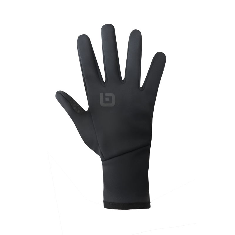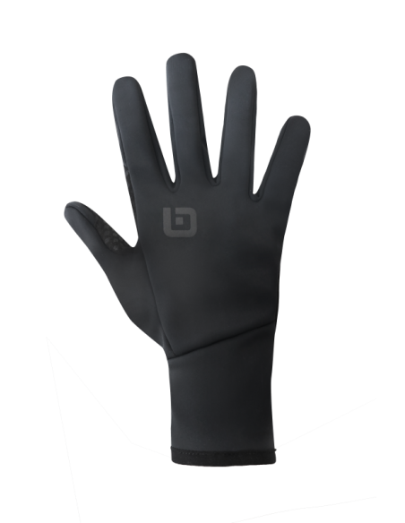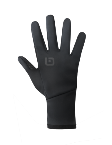 Guanto tecnico in tessuto soft shell antivento con vestibilità ergonomica preformata. Il design prevede stampa in silicone antiscivolo sul palmo e sulle dita per aumentare l'attrito sul manubrio e logo con stampa riflettente ad alta visibilità.