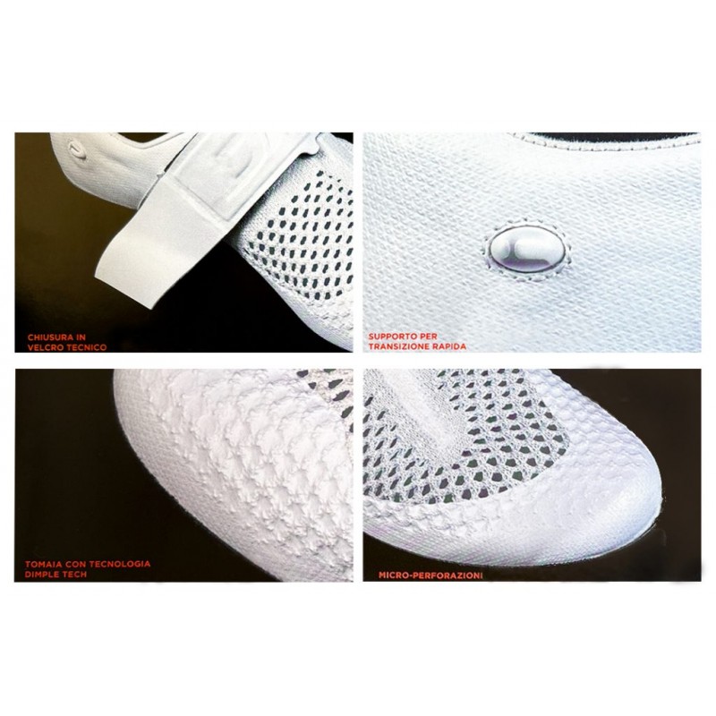 La tomaia con tecnologia DIMPLE TECH : la superficie micro-texturizzata migliora l’aerodimanica reale, riducendo la resistenza al vento