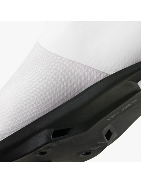 Suola R4 Fiber Composite: Un mix di nylon e fibra di carbonio con indice di rigidità 8, ideale per un trasferimento di potenza diretto ma confortevole.
