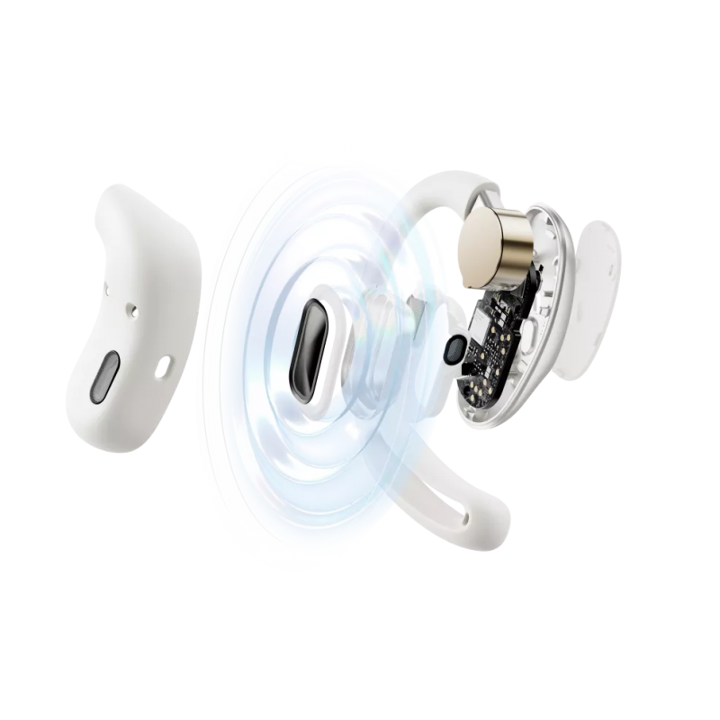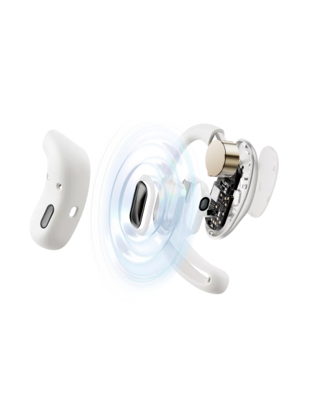 A differenza della conduzione ossea tradizionale, la tecnologia DirectPitch™ utilizza la sovrapposizione delle onde sonore per dirigere l'audio con estrema precisione verso l'orecchio. Questo si traduce in un campo sonoro ottimizzato, con bassi più profondi e una qualità audio coinvolgente, riducendo drasticamente la fuoriuscita del suono verso l'esterno per la massima privacy.