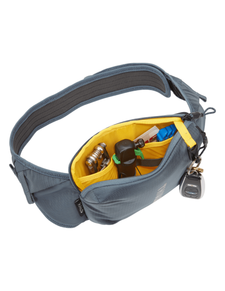 Stabilità superiore e materiali traspiranti: il marsupio THULE Rail Hip Pack 0,5L garantisce comfort anche durante le pedalate più intense.