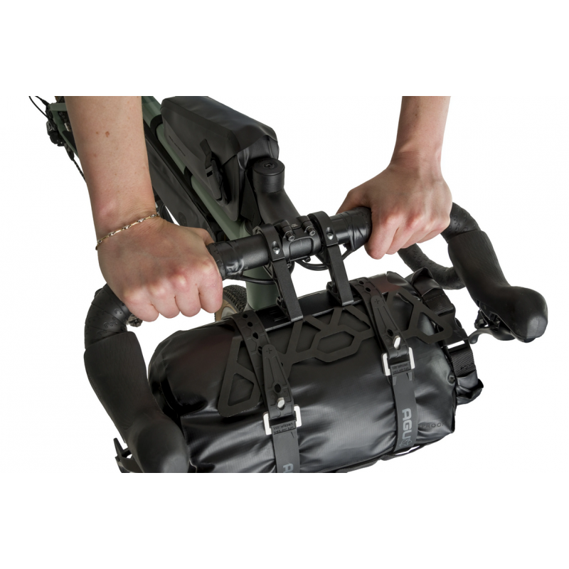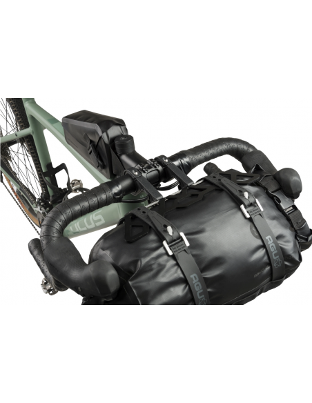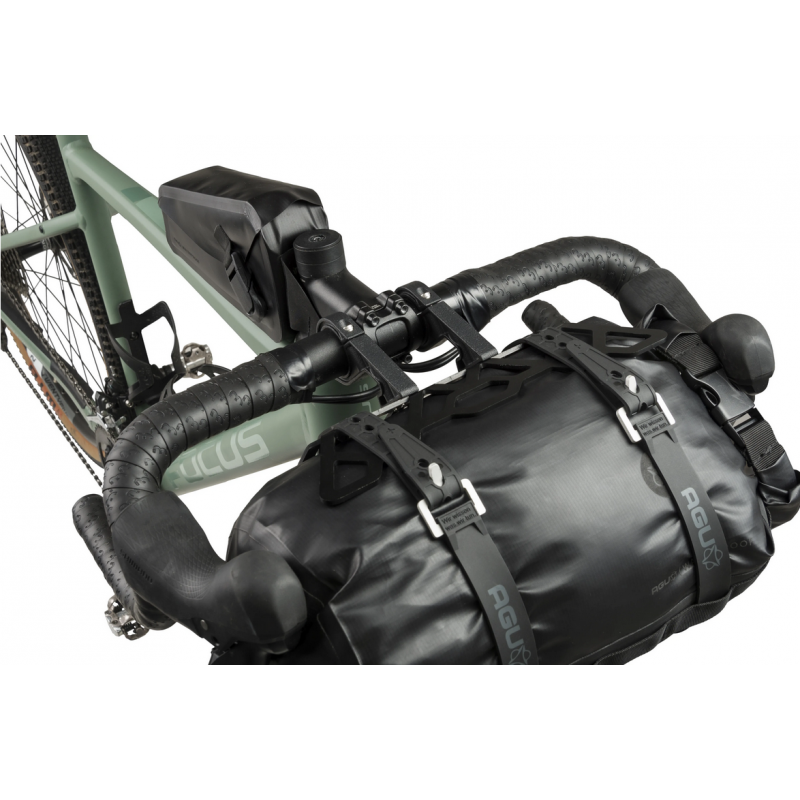 Borsa anteriore al manubrio bikepacking AGU EXTREME PRO Nero 9,6 litri Waterproof con supporto in alluminio