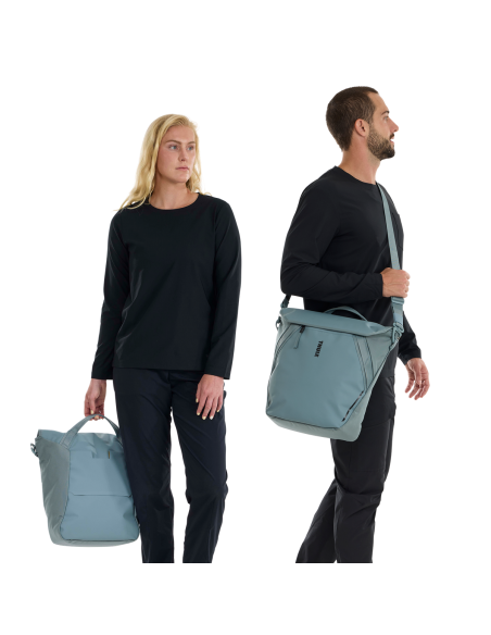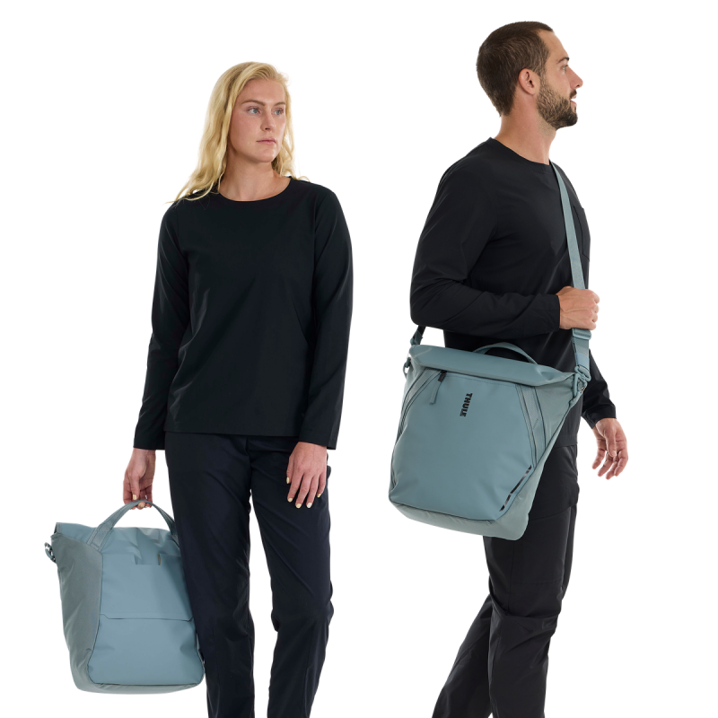 Una volta scesi dalla bici, la Thule Chasm si trasforma in una classica borsa da corriere. La cinghia trasversale assicura stabilità durante il trasporto a piedi e, per evitare che intralci i raggi della bici, può essere riposta ordinatamente sotto la patta principale. All'interno, lo spazio è ottimizzato con tasche dedicate per tenere gli oggetti essenziali, come chiavi e smartphone, sempre a portata di mano.