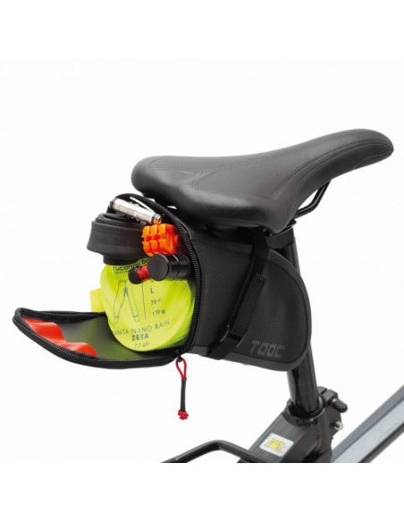 - Sistema di fissaggio sotto alla sella tramite velcri