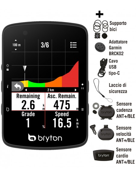 - Griglia dati personalizzabile via Bryton Active / sul dispositivo