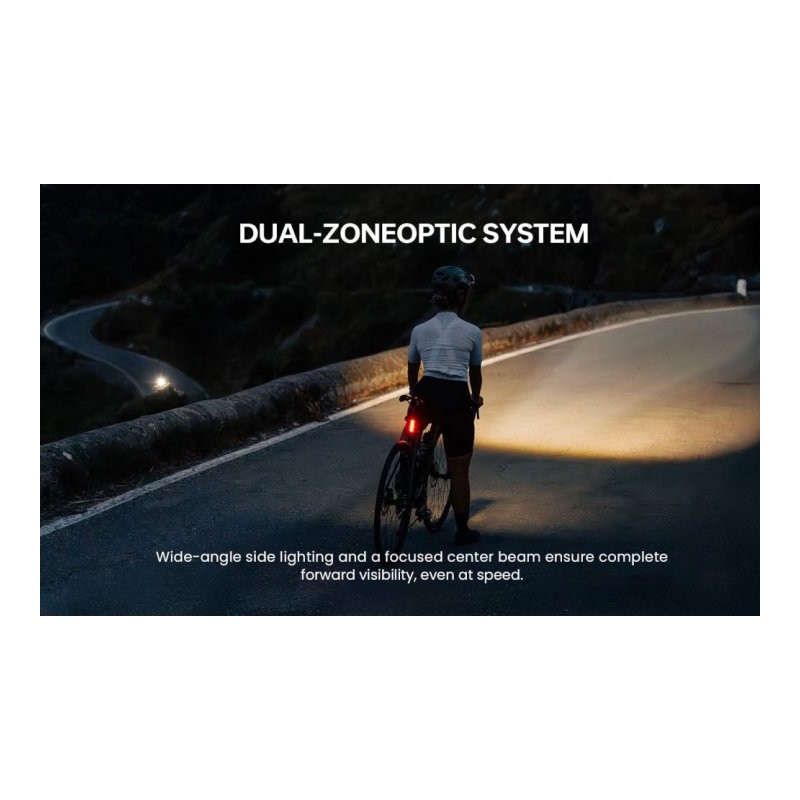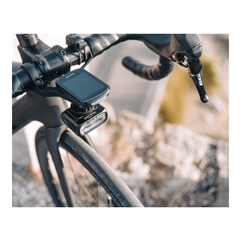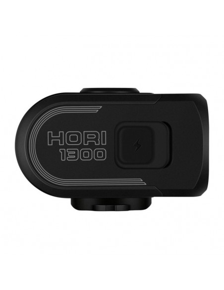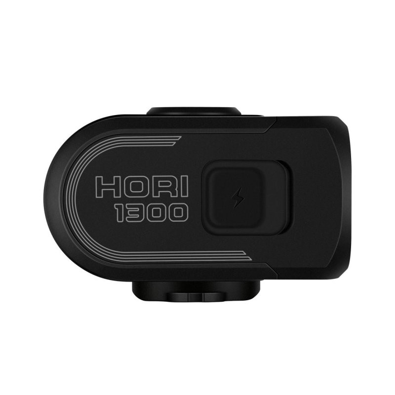 HORI 1300 può essere fissata a qualsiasi supporto da manubrio esistente utilizzando l'adattatore GoPro in dotazione. La batteria integrata da 3200 mAh si ricarica completamente tramite USB-C in circa 2 ore.