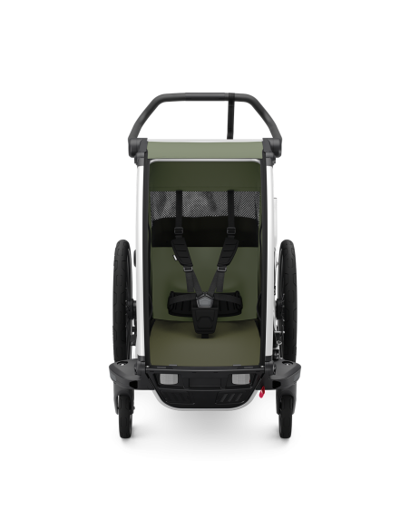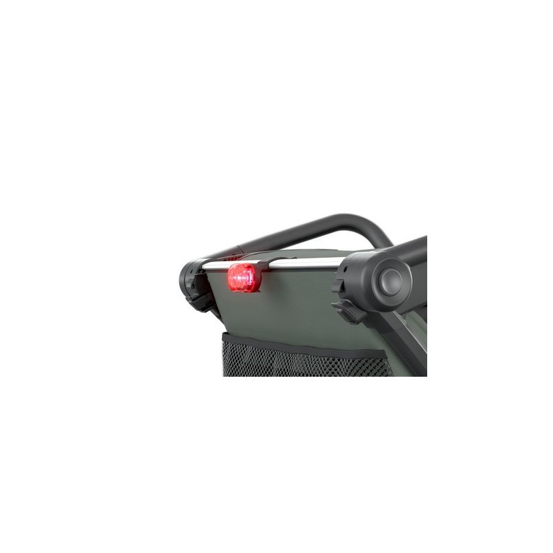 Costruito attorno a una robusta cellula di sicurezza, il rimorchio è dotato di una cintura a 5 punti imbottita che mantiene il bambino saldamente in posizione. La visibilità è una priorità: il kit include una luce posteriore di sicurezza e dettagli catarifrangenti ad alta efficienza. Inoltre, il maniglione regolabile ergonomicamente permette ai genitori di diverse altezze di spingere il passeggino con la massima naturalezza.