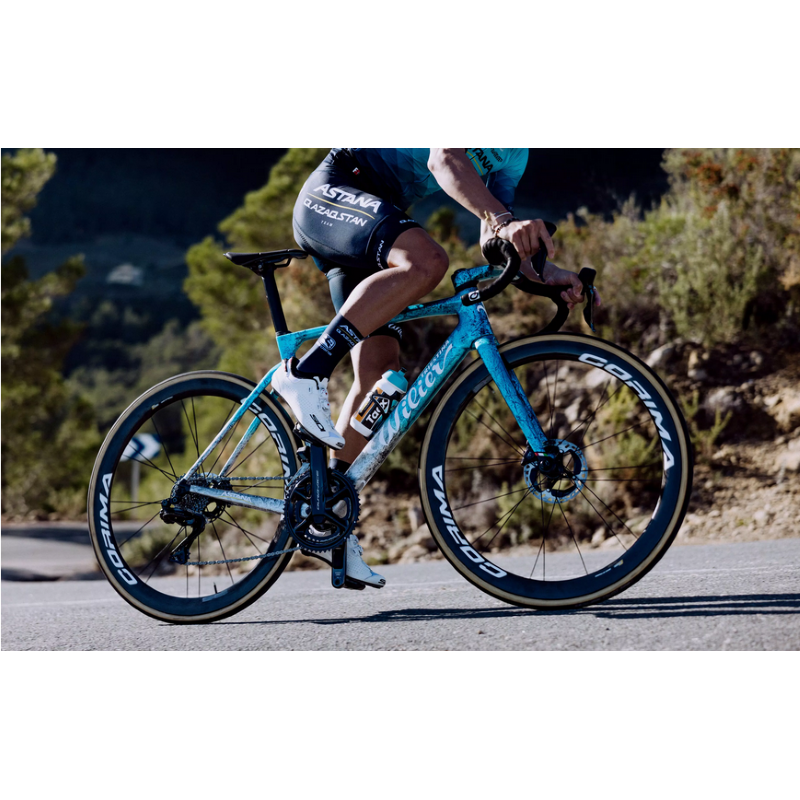 Allestimento CAMPAGNOLO SUPER RECORD WLR 12V con ruote Miche KLEOS 36 RD con coperture da 28 mm (si possono montare fino al 30 mm)