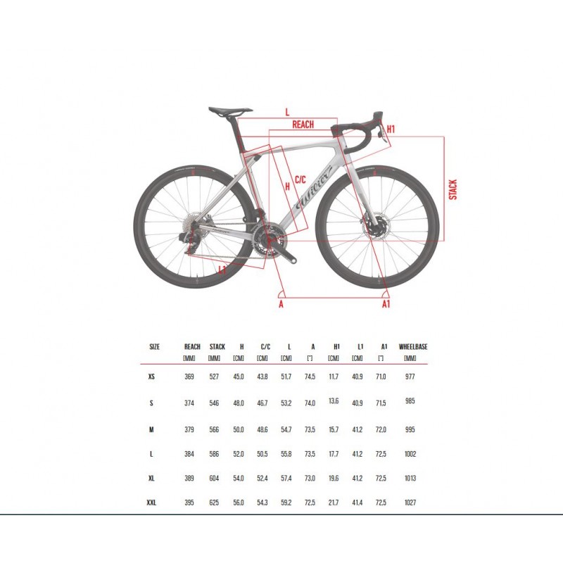 Le geometrie del telaio giocano un ruolo fondamentale quando parliamo di bici endurance. Per garantire il massimo livello di racing e comfort dobbiamo considerare proporzioni diverse tra i tubi del telaio. Abbiamo una posizione leggermente più corta (il reach è minore se paragonato a quello di bici con geometrie racing tradizionali) e più alta (uno stack maggiore rispetto alle geometrie racing).