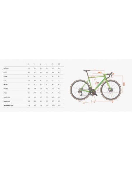 - Geometrie da corsa: Reach ottimizzato per garantire il massimo comfort e una posizione aerodinamica, con riduzione del CDA fino al 4% a velocità elevate.