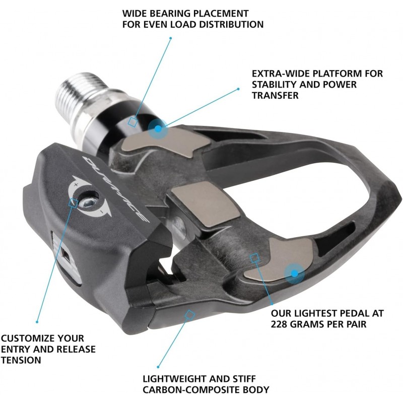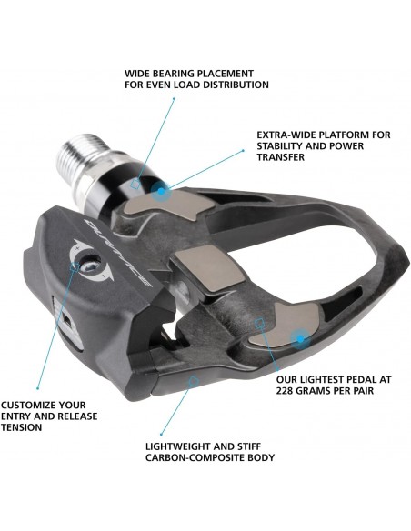 Pedali SHIMANO DURA-ACE R9100 SPD-SL: massima efficienza e trasmissione di potenza per il ciclismo su strada.