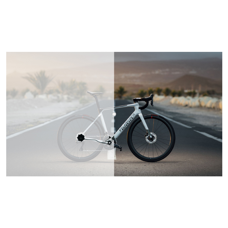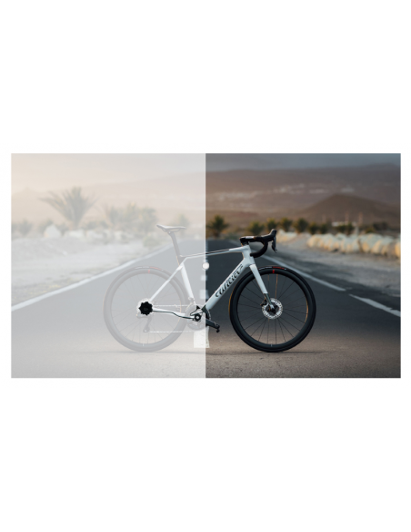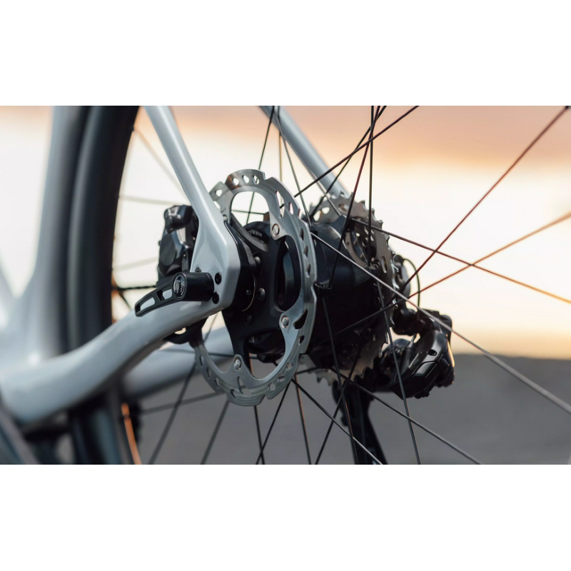 - Telaio avanzato: Il telaio monoscocca in carbonio con una curva integrata senza fori per i cavi elettrici offre un design curato e un'efficienza aerodinamica superiore.