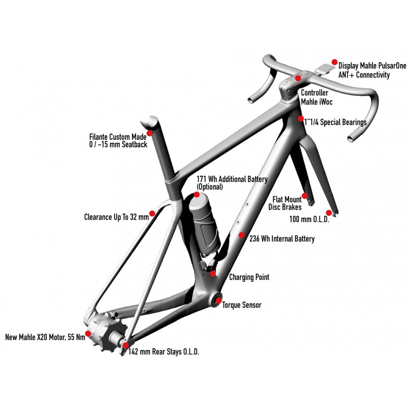 La nuova bici elettrica da corsa Filante Hybrid è dotata del sistema di assistenza al pedale più leggero al mondo, il nuovo motore X20 di Mahle.