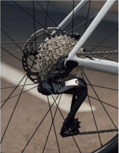 - Telaio avanzato: Il telaio monoscocca in carbonio con una curva integrata senza fori per i cavi elettrici offre un design curato e un'efficienza aerodinamica superiore.