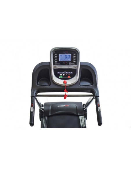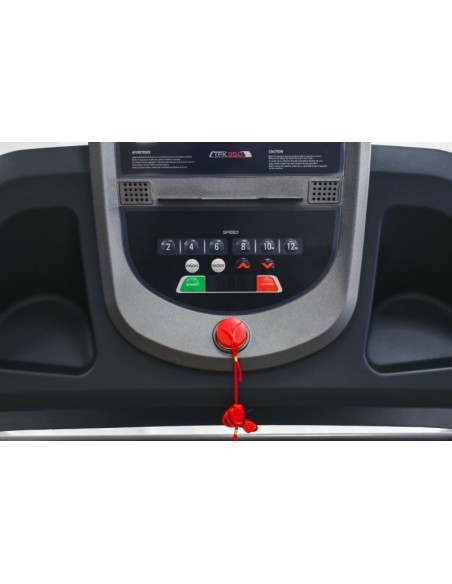 Il Tapis Roulant Everfit TFK 350 ha una console con ampio display LCD 115 x 65 mm retro-illuminato blue back light dove si possono visualizzare tempo, distanza velocità consumo calorico, programma in esecuzione e il rilevamento del battito cardiaco dai sensori palmari Hand Pulse ; in dotazione abbiamo un pratico supporto per tablet/smartphone.