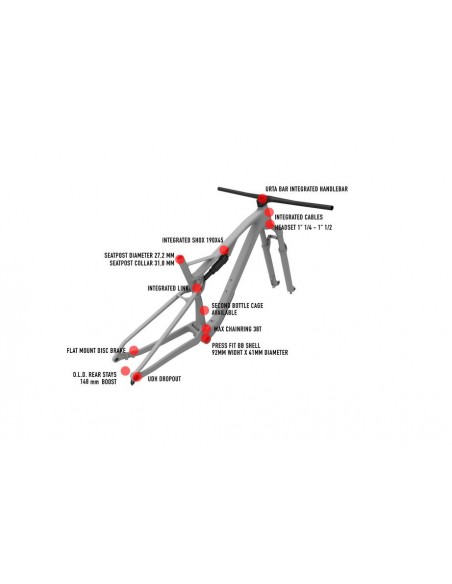 Telaio con carro posteriore boost da 12x148mm e anteriore boost da 15x110 per montare pneumatici anche maggiorati fino a 2.4"