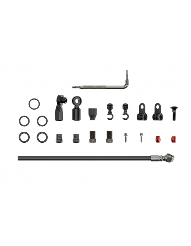 Il kit di tubi per freni idraulici Beveled Banjo è adatto ai freni SRAM per bici da corsa dotati di un raccordo Banjo smussato sulla pinza del freno. Il set comprende tutti i pezzi di ricambio necessari.