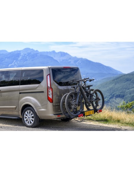 La massima protezione è garantita dal doppio sistema antifurto (pomelli opzionli), che mette al sicuro sia il portabici sul gancio traino che le biciclette trasportate.