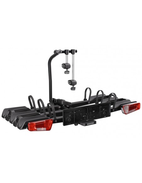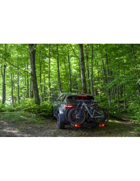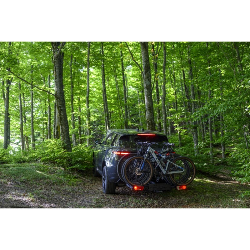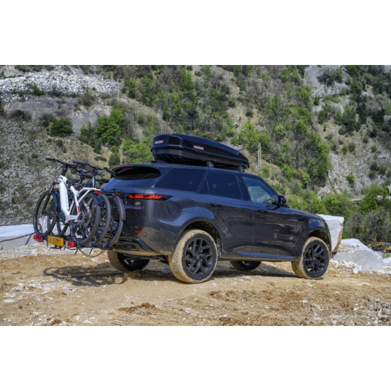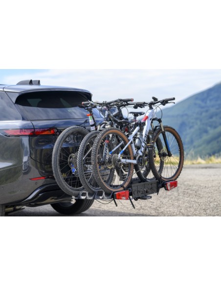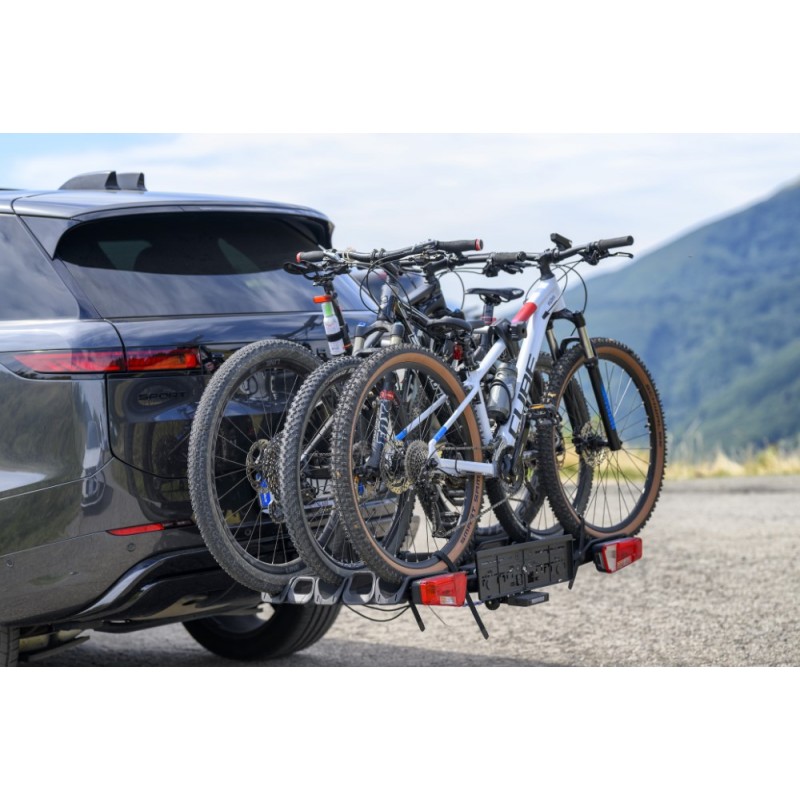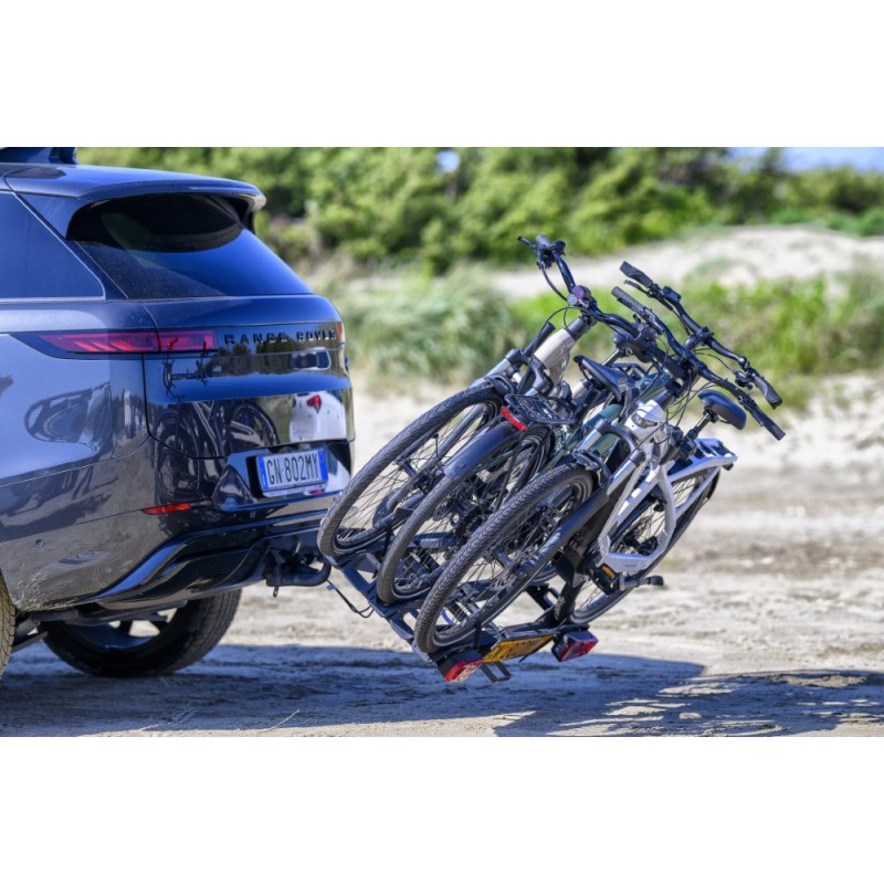 - Conformità totale: Il portabici integra una barra fanaleria completa e l'alloggiamento per la targa, assicurando il rispetto delle normative vigenti e la massima visibilità posteriore.