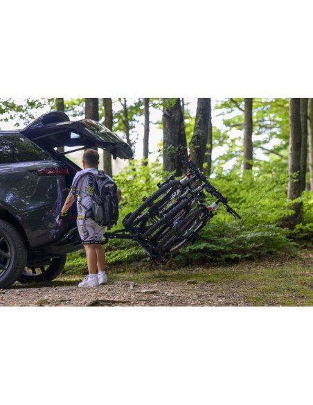 Grazie al meccanismo basculante azionabile a pedale, potrai accedere comodamente al bagagliaio della tua auto in ogni momento, senza dover smontare le bici.