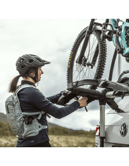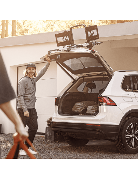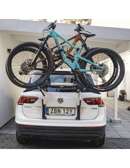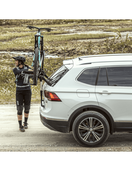 Il Thule OutWay Platform 2 è il portabici premium da portellone posteriore progettato per trasportare due biciclette garantendo la massima visibilità di targa e fanali.